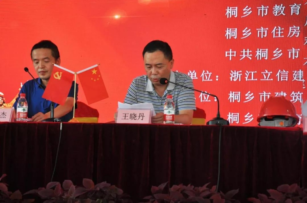 會議先后由教育局副局長王曉丹、桐鄉(xiāng)市城區(qū)開發(fā)管理委員會副主任吳康致辭,浙江立信建設(shè)集團(tuán)有限公司副總經(jīng)理顧云杰和浙江北圣建設(shè)有限公司總經(jīng)理朱偉良作交流發(fā)言;中共桐鄉(xiāng)市石門鎮(zhèn)委員會黨委副書記楊雄金對創(chuàng)建“紅色工地”,進(jìn)一步深化黨建引領(lǐng)工作作重要講話。
