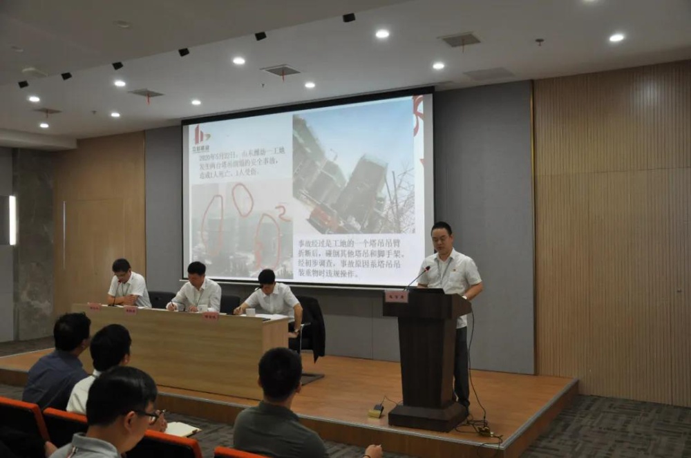 緊接著,由生產部副經理倪杰對當前建筑業(yè)發(fā)生的案例進行警示并對公司當前安全生產情況進行總結,提出下階段公司安全生產工作幾項措施。
