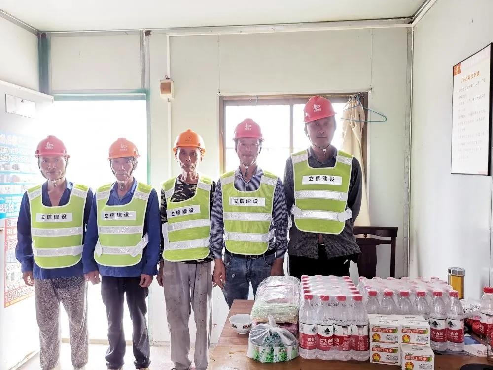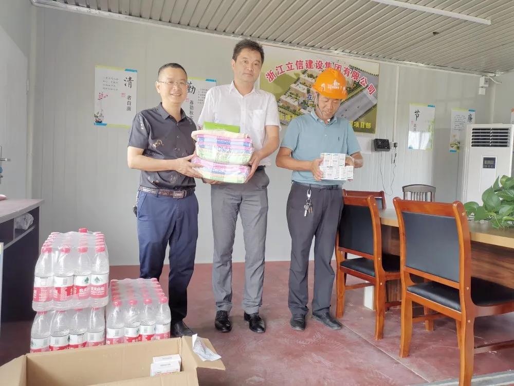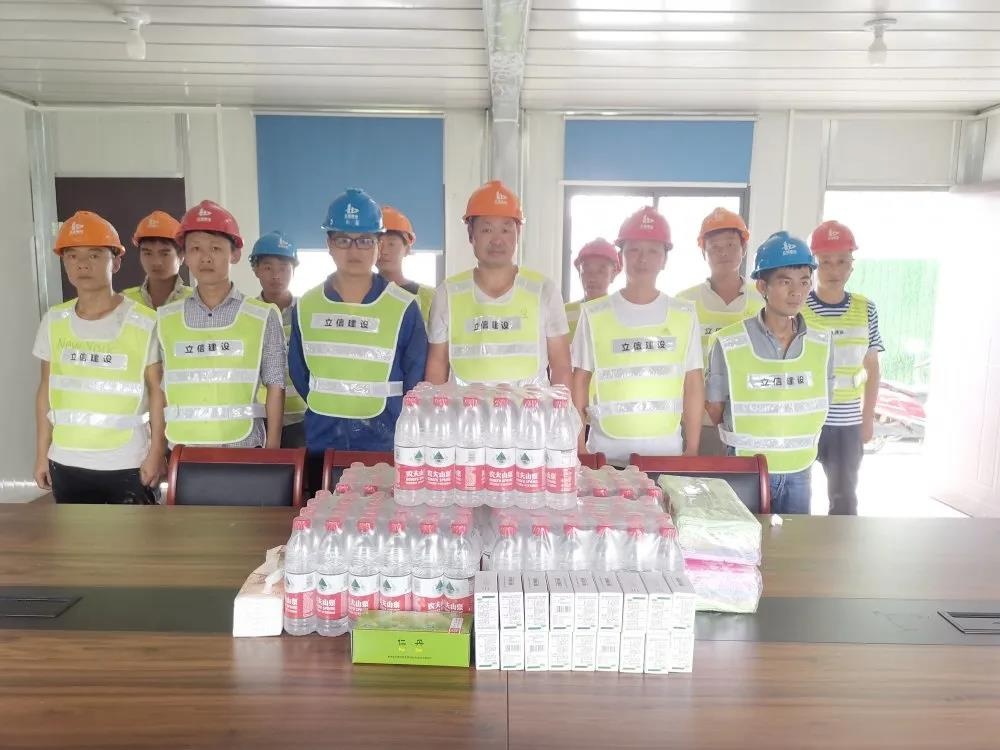 近日,集團公司董事長譚松坤、總工程師顧云杰攜生產(chǎn)部全體,來到各項目施工一線,給堅守在一線崗位的工人送上礦泉水、藿香正氣水、人丹、清涼油等防暑降溫用品。他們向一線的工人了解了工作和生活情況。向一線的工人表達了深深的敬意,感謝他們在企業(yè)發(fā)展中作出的巨大貢獻,叮囑他們注意做好防暑降溫措施,注意保重身體,以更好的狀態(tài)投入工作。同時,督促各項目部必須合理安排作業(yè)時間,關(guān)愛工人,保障高溫施工的防暑降溫物資到位,配備休息室,注意勞逸結(jié)合。要求高溫施工期間,所有人員必須將安全生產(chǎn)放在首位,加強現(xiàn)場的檢查力度,消除盲區(qū),定期開展巡檢,做好人員的清點工作,確保各項工作有條不紊推進。