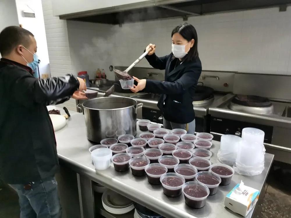 細(xì)心挑選過的食材經(jīng)過提前浸泡,再由大廚精心烹飪,每一碗都甜甜糯糯,豆子綿軟、桂圓清香、蜜棗甘甜,盛起的每一碗都是熱騰騰的祝福。