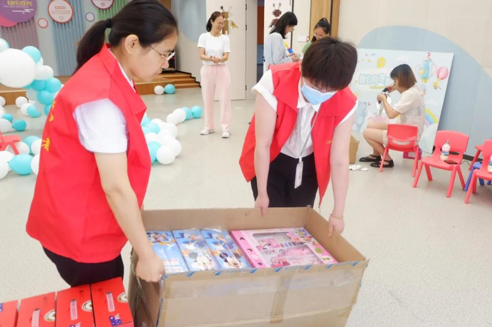 聽(tīng)著徐院長(zhǎng)的講述,大家對(duì)工作人員的辛勤付出深表欣慰?!凹热徊荒芘c孩子們互動(dòng)游戲,那我們就給他們創(chuàng)造一個(gè)快樂(lè)的六一環(huán)境吧!”,志愿者們協(xié)助工作人員給孩子們布置了兒童節(jié)氛圍,希望孩子們?cè)诟@豪锒冗^(guò)一個(gè)快樂(lè)的“六·一”。