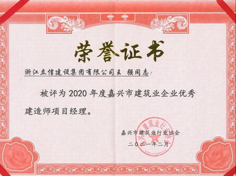 6月29日下午,嘉興市建筑行業(yè)協(xié)會召開“慶建黨百年、嘉興市建協(xié)爭先創(chuàng)優(yōu)”表彰大會,我集團榮獲“嘉興市先進建筑業(yè)企業(yè)”稱號,項目經(jīng)理王強獲評“嘉興市建筑業(yè)企業(yè)優(yōu)秀建造師項目經(jīng)理”。