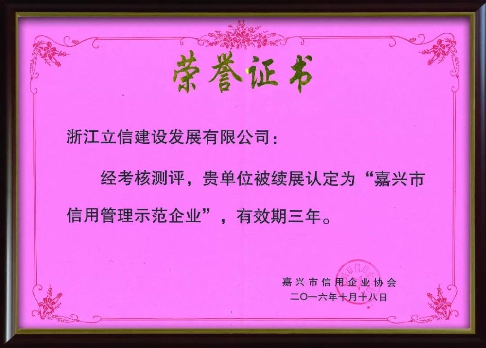立信集團(tuán)連續(xù)多年取得“守合同重信用企業(yè)”,“浙江省建筑業(yè)誠信企業(yè)”等榮譽,無一不體現(xiàn)公司以誠信為立商之本,恪守企業(yè)理念和核心價值觀,是企業(yè)長期發(fā)展的基石。
