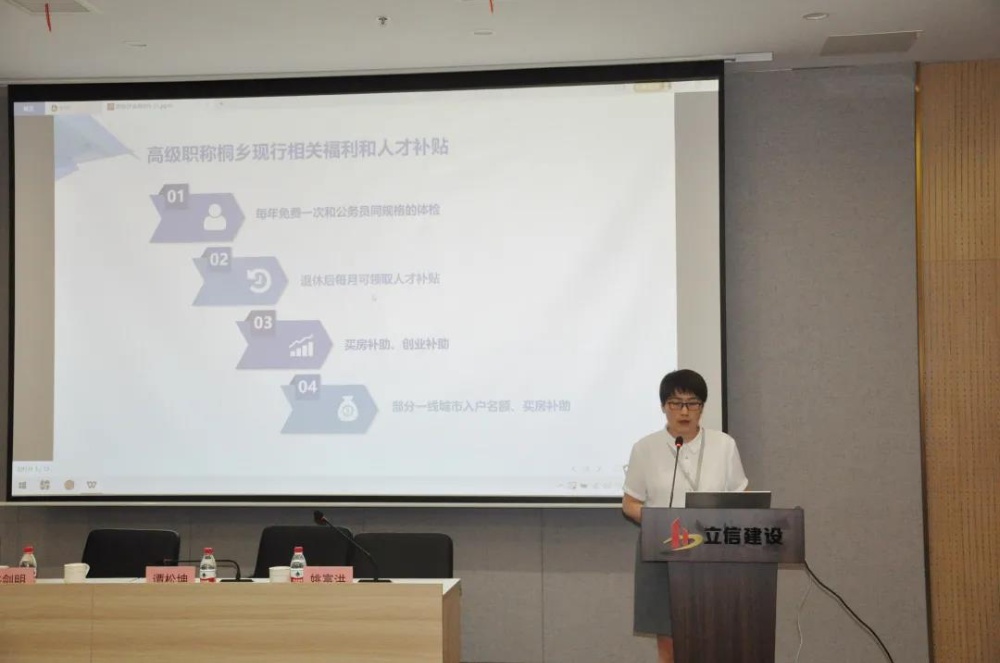 本次交流會(huì)由行政部程丹鳳主講,干貨滿滿,從高級(jí)職稱桐鄉(xiāng)現(xiàn)行相關(guān)福利和人才補(bǔ)貼、職稱等級(jí)、職稱評(píng)審準(zhǔn)備工作和評(píng)審?fù)緩降确矫孢M(jìn)行了解讀。