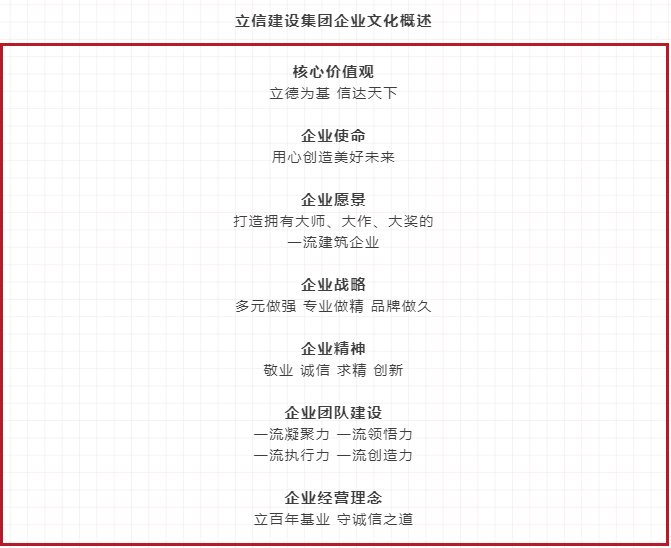 此次企業(yè)文化培訓(xùn),提升了我們對集團(tuán)企業(yè)文化核心理念的理解和認(rèn)同。今后,我們也將從企業(yè)文化中持續(xù)汲取養(yǎng)分,圍繞“立德為基,信達(dá)天下”的核心價值觀,向“打造擁有大師、大作、大獎的一流建筑企業(yè)”的愿景不斷邁進(jìn),踐行"用心創(chuàng)造美好未來”的使命,在不斷創(chuàng)新、不斷進(jìn)步的道路上,助力企業(yè)高質(zhì)量發(fā)展!