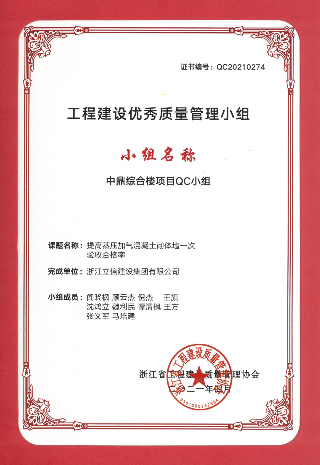 我集團中鼎綜合樓項目QC小組被評為2021年工程建設優(yōu)秀質(zhì)量管理小組,并獲浙江省質(zhì)量協(xié)會優(yōu)秀成果推薦名額。