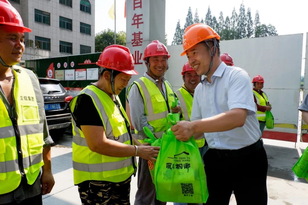 7月27日上午,桐鄉(xiāng)市總工會黨組書記、主席成曉萍一行來到我集團承建的康涇塘西側住宅小區(qū)項目進行高溫慰問。集團董事長譚松坤、總經理章偉權等陪同慰問。