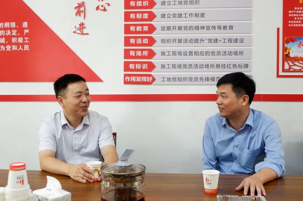 集團董事長譚松坤為成曉萍一行介紹項目進展情況,并就高溫天氣下項目部的防暑降溫工作作進一步溝通交流。成曉萍一行對項目部采取的防暑降溫措施給予充分肯定,并囑咐項目負責人多關注施工安全,合理安排休息時間,在保證工程質量和進度的同時,做好防暑降溫工作和勞動保護,確保一線施工人員平安度夏。