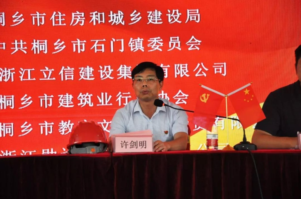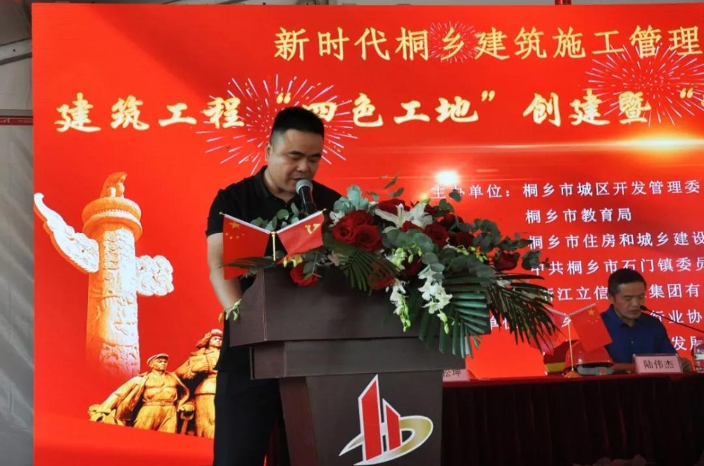 會議先后由教育局副局長王曉丹、桐鄉(xiāng)市城區(qū)開發(fā)管理委員會副主任吳康致辭,浙江立信建設(shè)集團(tuán)有限公司副總經(jīng)理顧云杰和浙江北圣建設(shè)有限公司總經(jīng)理朱偉良作交流發(fā)言;中共桐鄉(xiāng)市石門鎮(zhèn)委員會黨委副書記楊雄金對創(chuàng)建“紅色工地”,進(jìn)一步深化黨建引領(lǐng)工作作重要講話。
