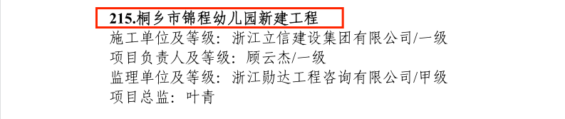 2021年度浙江省建筑施工安全生產(chǎn)標(biāo)準(zhǔn)化管理優(yōu)良工地名單出爐,全省共462項工程上榜。其中,由我集團承建的桐鄉(xiāng)市錦程幼兒園新建工程,1#廠房、2#廠房(年產(chǎn)蒸發(fā)系統(tǒng)15萬套新建項目)工程榜上有名。
