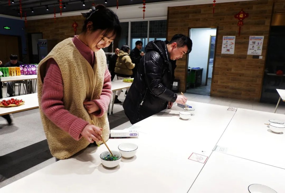 活動(dòng)現(xiàn)場氣氛熱烈,有絞盡腦汁爭相猜謎的,有擼起袖子比賽夾彈珠的,有聚精會(huì)神玩投壺的……大家都沉浸在元宵活動(dòng)的喜悅中。